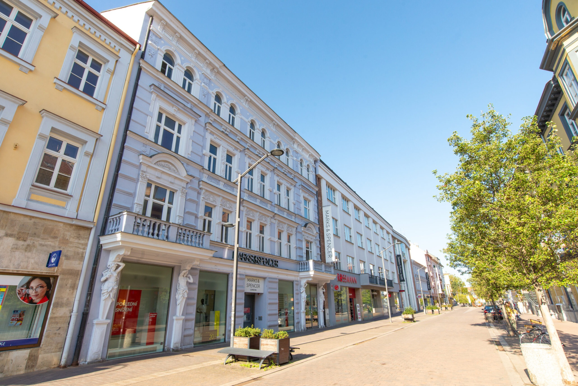 Obchodní centrum tvoří celkem čtyři budovy nacházející se na hlavní pěší zóně v Českých Budějovicích. Nemovitost se díky této exkluzivní lokalitě vyznačuje trvale vysokou obsazeností, přičemž většinu tvoří především dlouhodobí nájemci. Ze známých značek můžeme jmenovat například prodejce oděvů H&M, New Yorker, drogerii Rossmann nebo supermarket Albert. Budovy také využívají menší a střední společnosti pro své kanceláře.